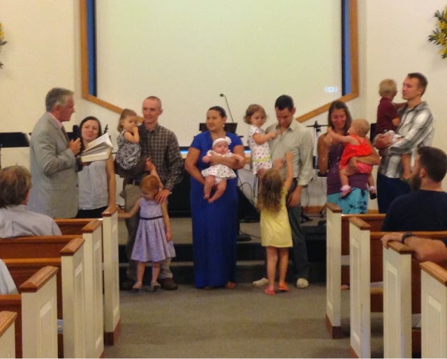 We had wanted to dedicate callen when he was a baby, but it never worked out. And now maelyn just turned one so We figured we better plan it before time keeps going by. It was special that my dad could dedicate the kids. And chads parents made the trip up to be there for it as well. Such a godly heritage for callen and maelyn. We wanted to dedicate the kids to God, as they are truly gifts from Him. And ultimately they are His! We thank God for them and we pray that they will grow up to know and love Him with all of their hearts. It was nice to be able to dedicate the kids along with Ron and Bobbi and Jesse and Andrea and their kids.